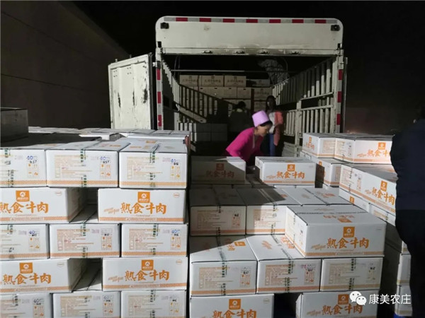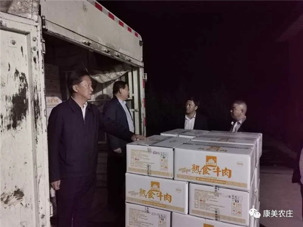 此次援助物资主要有康美牛肉拌面、熟食牛肉系列产品以及新华牧业的熟食鸡肉、鸡蛋等物资。该批物资连夜调集装车,24日清晨六时出发火速运往陇南。