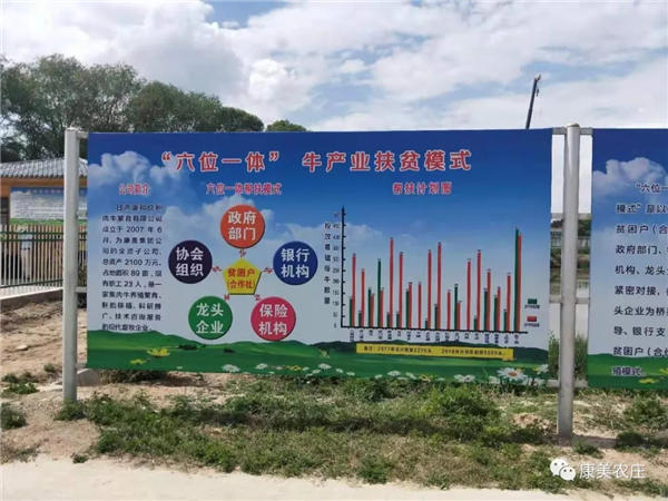 近年来,公司积极参与临洮县“百企帮百村”行动,立足全县实际,在“康美模式”的基础上引进商业保险 ,结合新时代脱贫攻坚新要求,在临洮县政府的引导帮助下,探索出“政府+银行+保险+企业+协会+贫困户(合作社)”的“六位一体”牛产业扶贫模式 。该模式被省农牧厅确定为全省六大扶贫产业牛产业发展的重要模式,要求在全省进行推广。