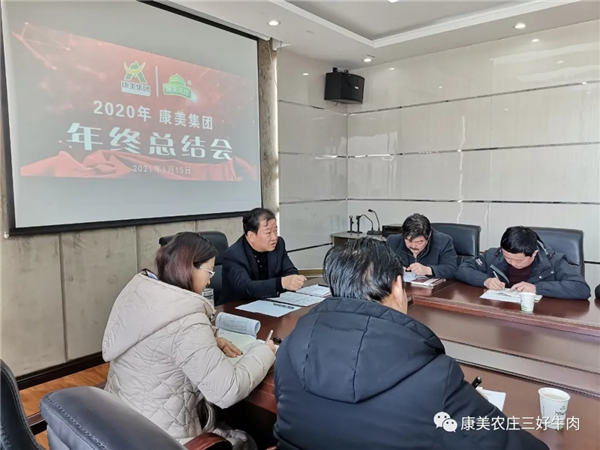 2021年1月15日上午康美集团公司2020年终总结会召开 ,会议由公司总经理张维维主持,甘肃浪美食品有限公司负责人、甘肃天美白牦牛产业开发有限公司负责人、兰州营销中心负责人 、甘肃康隆商贸有限公司负责人、甘肃康和良种肉牛繁育有限公司负责人,以及集团公司各职能部门负责人参加 。